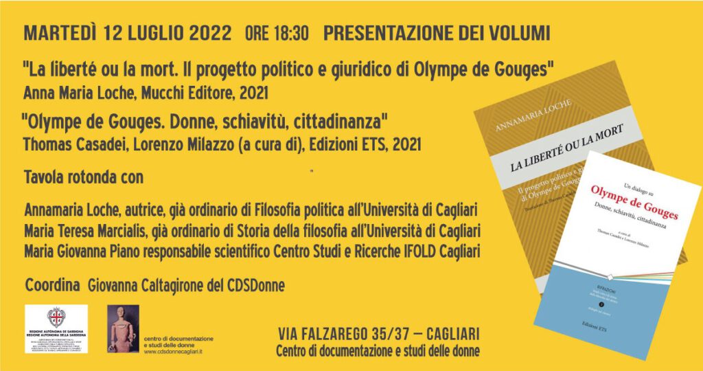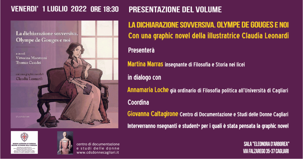 Martedì 22 marzo 2022, alle h. 18.30, presso il Polo Bibliotecario di via Falzarego 35 a Cagliari, in occasione dell’otto marzo per la Giornata internazionale dei diritti della donna, il Centro di Documentazione e Studi delle Donne di Cagliari
