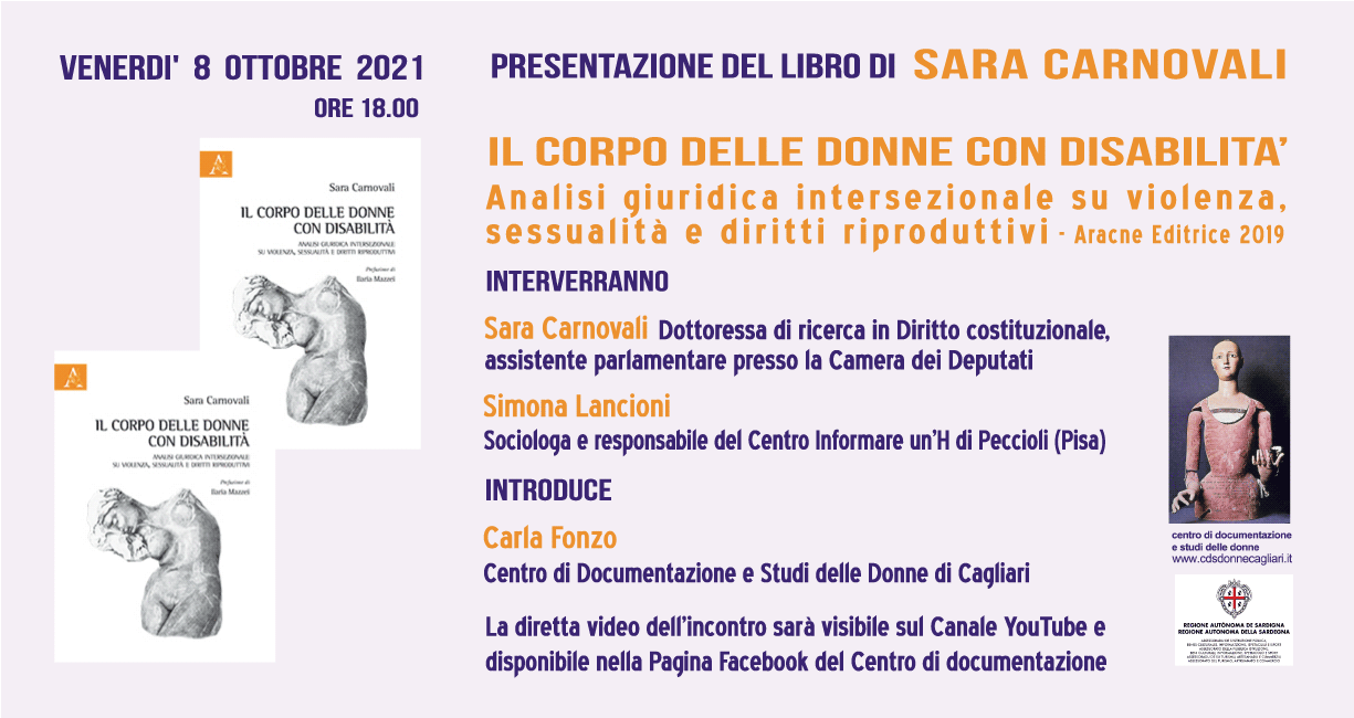 “Le donne con disabilità sono spesso vittime di discriminazioni multiple, a causa dell’intersezione tra fattore “disabilità” e fattore “genere”. Seguendo una prospettiva di tipo intersezionale, il volume parte dall’analisi dei diritti umani delle persone con disabilità, per poi intrecciarsi con le tematiche di genere e i Feminist Disability Studies. L’opera pone in luce i profili di maggiore rilievo costituzionale nella garanzia dei diritti fondamentali delle donne con disabilità che afferiscono alla dimensione del corpo, indagando i temi della violenza, della sessualità e dei diritti riproduttivi. Tali ambiti appaiono infatti quelli in cui le discriminazioni vissute dalle donne con disabilità risultano particolarmente pervasive, nonché quelli meno esplorati dalla dottrina, che possono pertanto offrire nuovi o diversi campi di indagine per il contrasto alle discriminazioni multiple.” (dalla quarta di copertina di Sara Carnovali, Il corpo delle donne con disabilità. Analisi giuridica intersezionale su violenza, sessualità e diritti riproduttivi, Aracne Editrice 2019)