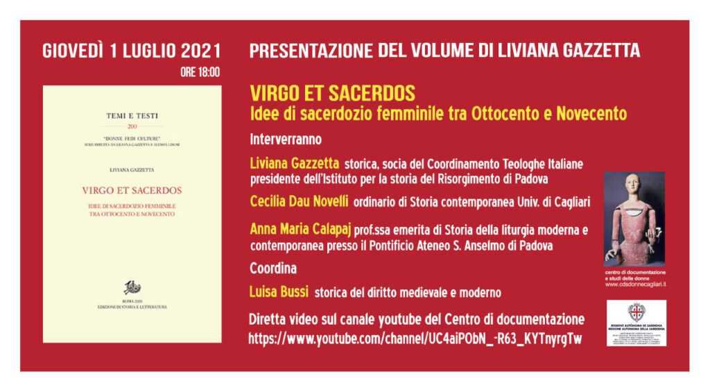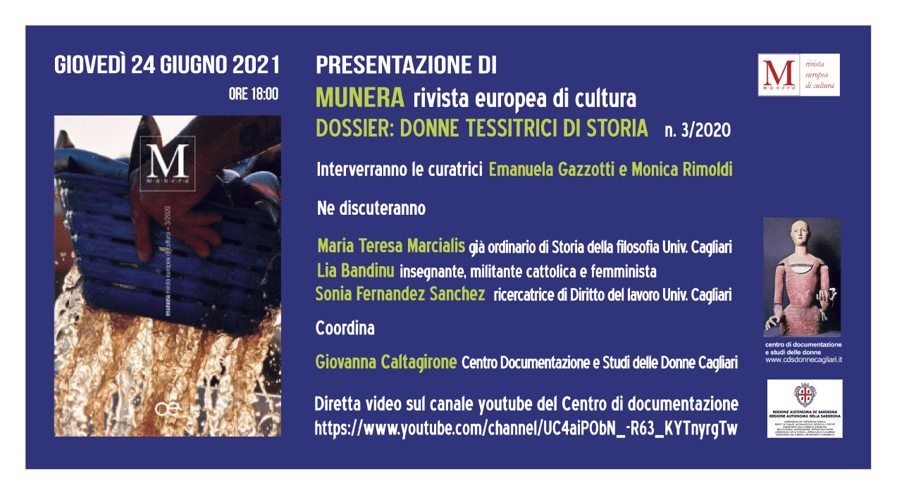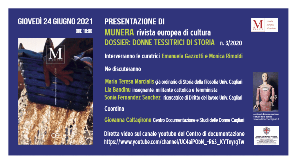 Ne discuteranno Maria Teresa Marcialis– già ordinario di Storia della filosofia presso l’Università di Cagliari Lia Bandinu– insegnante, militante cattolica e femminista Sonia Fernandez Sanchez– ricercatrice di Diritto del lavoro presso l’Università di Cagliari