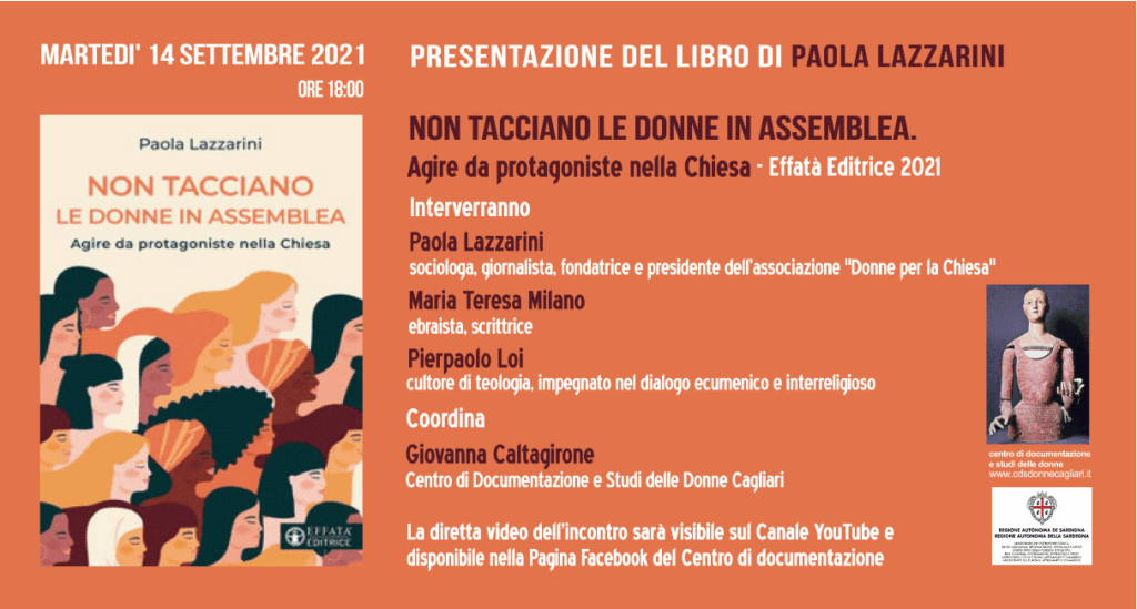 Partecipano Paola Lazzarini – sociologa, giornalista, fondatrice e presidente dell’Associazione “Donne per la Chiesa” Maria Teresa Milano – ebraista, scrittrice Pierpaolo Loi – cultore di teologia, impegnato nel dialogo ecumenico e interreligioso